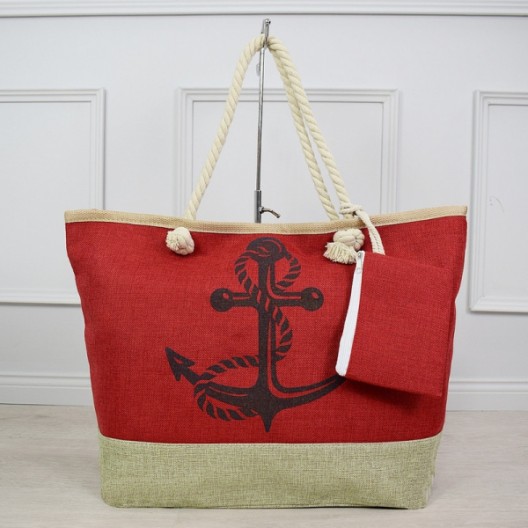 Letná dámska plážová červená taška na pláž s potlačou kotvy