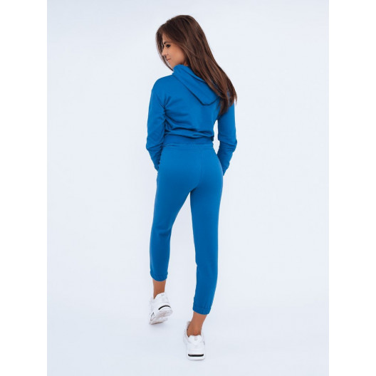 Jednofarebná dámska modrá tepláková súprava s kapucňou
