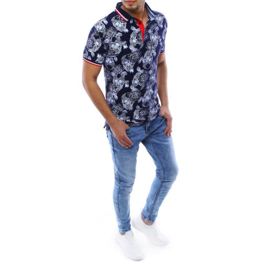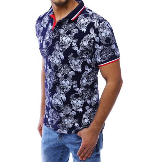 Letná pánska polokošeľa s motívmi lebiek v tmavej farbe