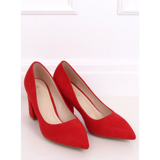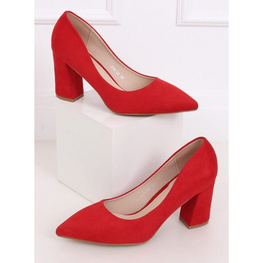 Červené dámske semišové lodičky na vysokom opätku
