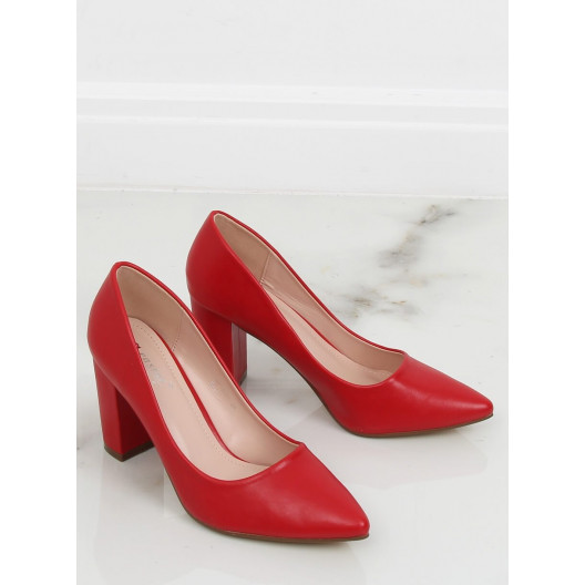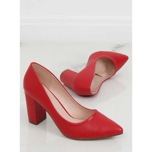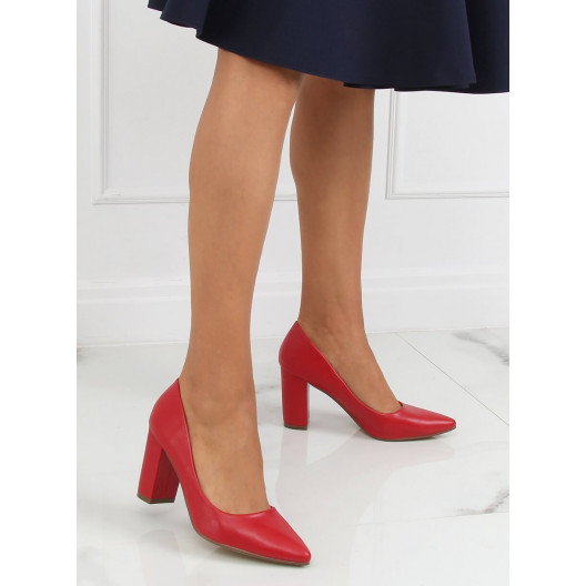 Krásne dámske červené lodičky na vysokom plnom opätku