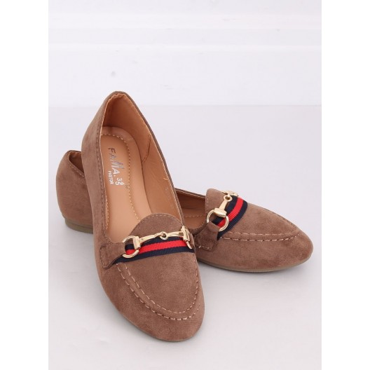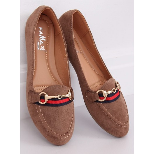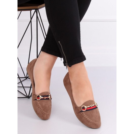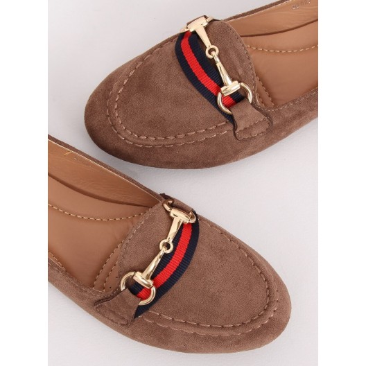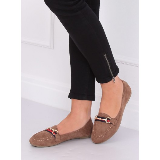Dámske béžové nasúvacie mokasíny s ozdobnou zlatou prackou