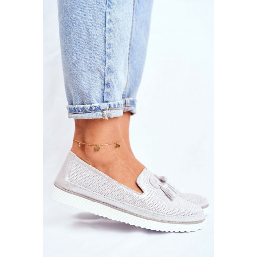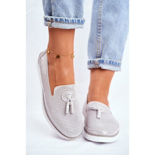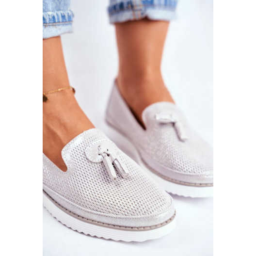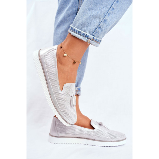 Krásne dámske letné strieborné mokasíny