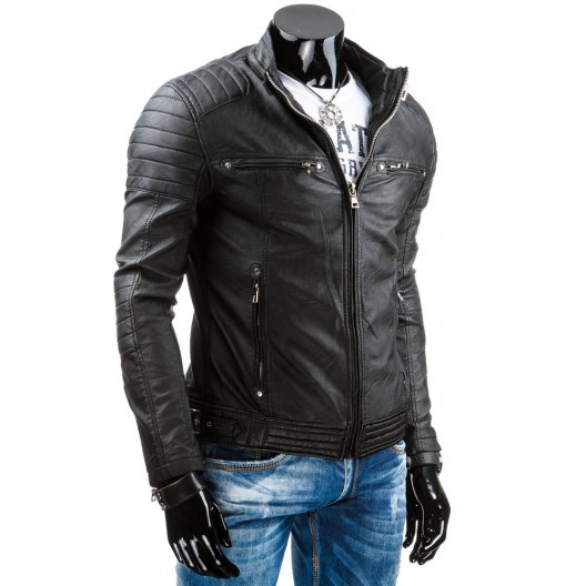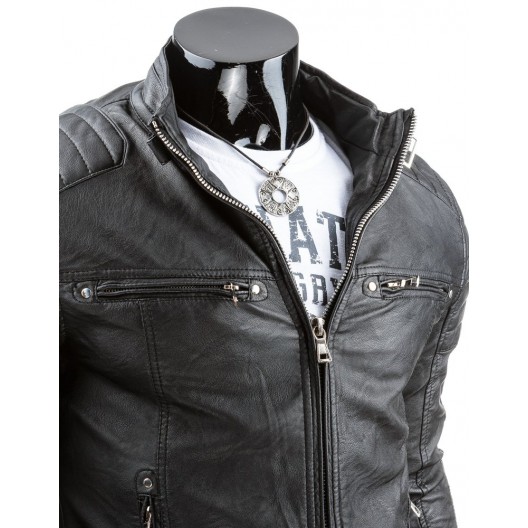 VEĽKOSŤ XL Pánska prechodná kožená bunda čiernej farby bez kapucne SKLADOM