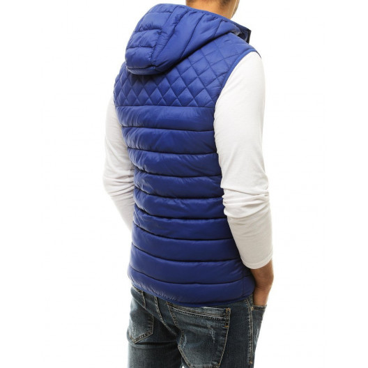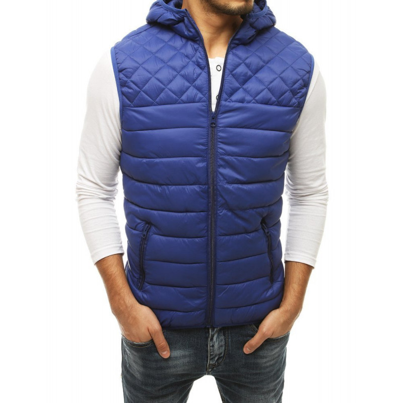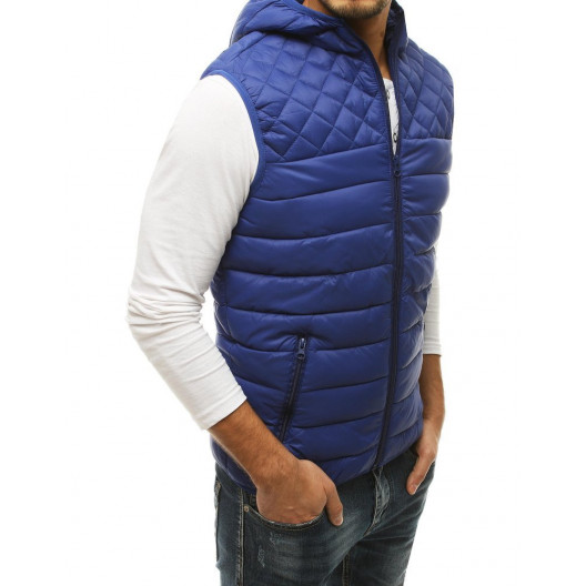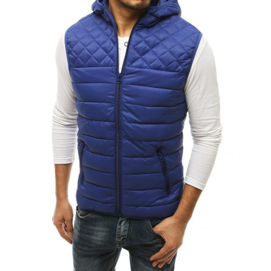 Štýlová krásna pánska prechodná vesta s kapucňou v svetlomodrej farbe