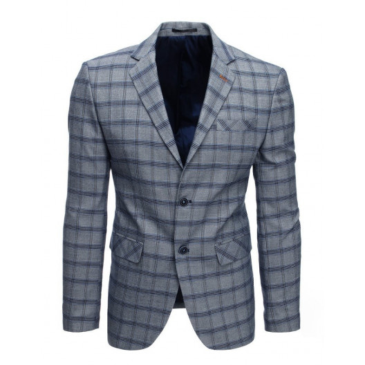 Moderné pánske sivé sako so zapínaním na dva gombíky