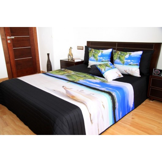 Čierny pehoz na posteľ s motívom pláže