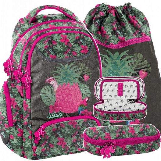 Ružová školská taška s motívom barbie v trojčasťovom sete