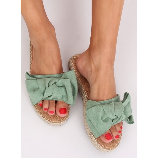 Dámske semišové šľapky v zelenej farbe