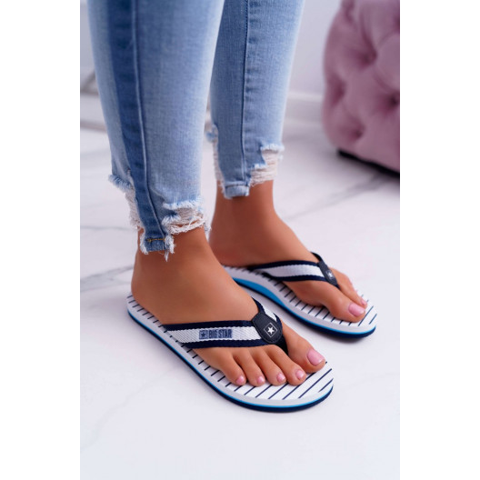 Trendy dámske pruhované bielo modré šľapky BIG STAR