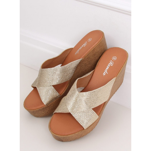 Zlaté dámske letné šľapky na vysokej platforme